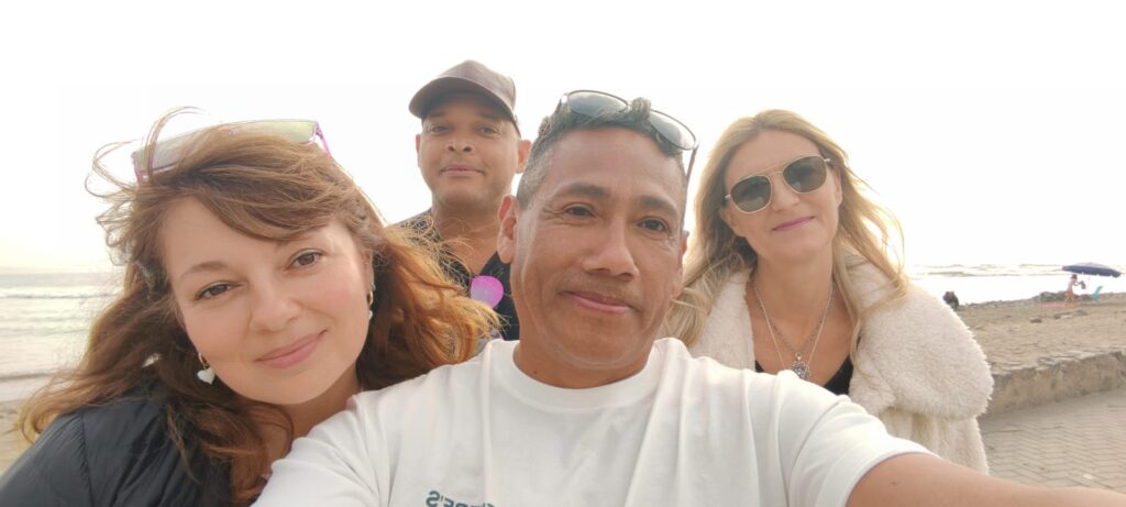Hilsen fra Huanchaco i Trujillo, oktober 2025. I forgrunnen: Olga og Joselito. Bak: Rayner og Cecilie.