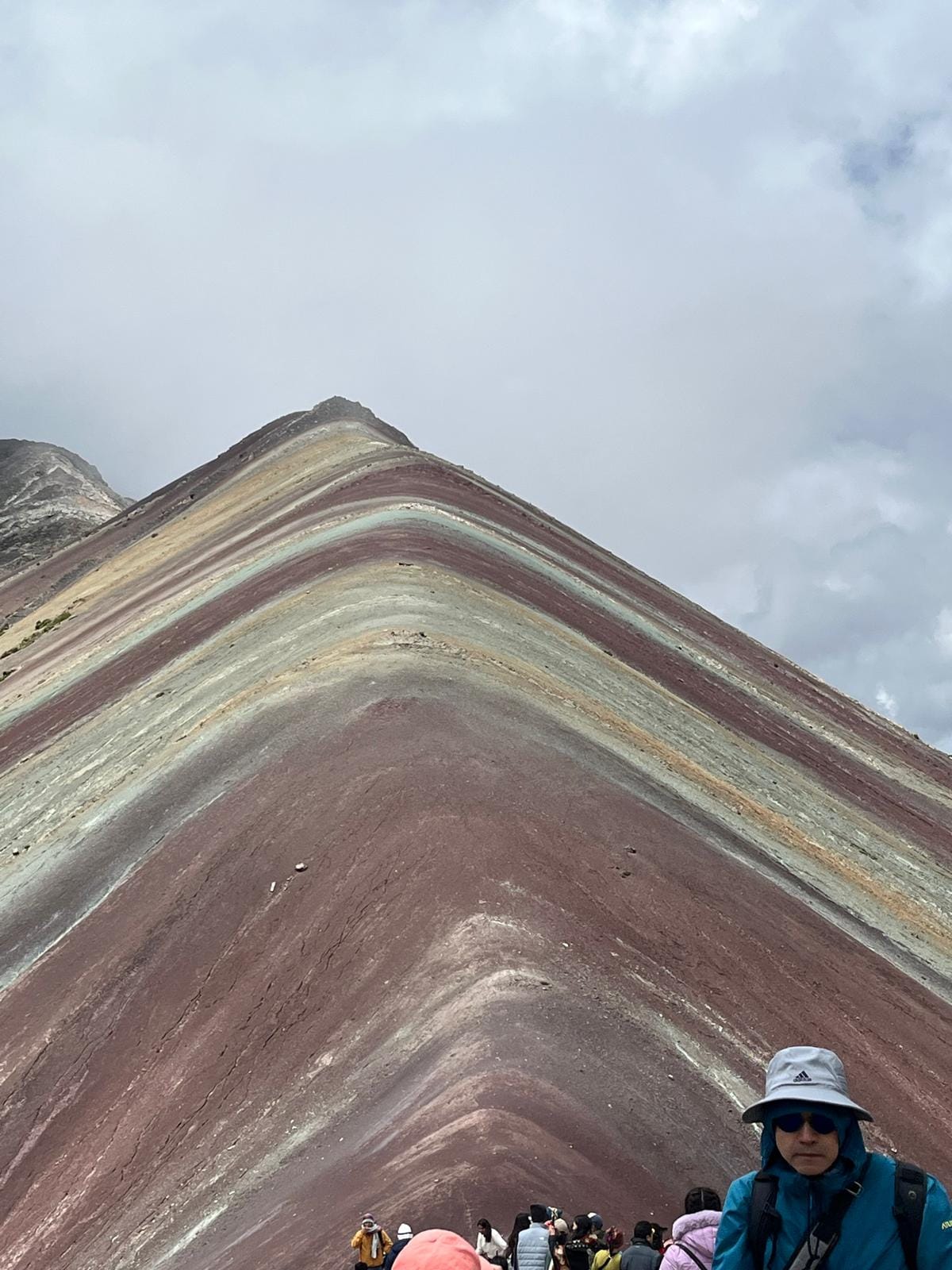 Klokka halv fem i dag morges forlot vi den lille leiligheten vi leier her i Cusco. Vi hadde hørt kraftige regndrypp på taket en god stund før vi skulle dra ut. Jeg gikk og tenkte på hvordan det ville være på fjellet om det skulle regne (eller snø) der. Tanken på en snøtur på over 5000 meter i kulde og kanskje tåke føltes ikke sånn kjempefristende der på morgenkvisten. Men nå skulle vi uansett på tur, og været vet man som kjent aldri så mye om på forhånd. Først kjørte vi i to timer før vi stoppet for å spise frokostbuffet på et hyggelig sted på ca. 3700 meter over havet. Jeg spurte en som jobbet der om hvordan været så ut på fjellet. Han pekte i en retning jeg ikke visste var Montaña de colores, og sa: Se, det regner kraftig der nå. Hm, tenkte jeg. Jeg spiste opp frokosten og kjøpte to regn-ponchoer. Så begynte oppstigningen med bussen i en time til. Vi stoppet på ca. 4700 meters høyde (tror jeg). Resten av strekningen skulle vi gå. Vi fikk mange gode tips på bussen opp av en hyggelig guide som het Oscar. Dette med høyden var noe alle og enhver måtte ta på største alvor, og alle måtte kjenne etter selv i egen kropp om det ble for mye – og om man rett og slett måtte snu. Det var ikke uvanlig at folk måtte avbryte turen fordi de ikke klarte høyden. I tillegg måtte man puste inn med nesen og ut med munnen. Man måtte gå sakte, sakte – og ta mange pauser. Men pausene måtte ikke være for lange, for kroppen måtte ikke bli kald. Da ville det bli mye vanskeligere å fortsette. Vi burde drikke koka-te for å tåle høyden, og muña-te for å få raskere fordøyelse. Når man er oppe i høyden, går også fordøyelsen saktere. Når vi skulle drikke vann, måtte vi vente litt før vi drakk. Vi måtte «lufte vannet», for ellers ville det være «dødt vann» uten oksygen. Det var helt vanlig å kaste opp på disse turene, og da måtte vi føle oss fri til å gjøre det. I tillegg kunne vi betale for en hest om vi følte at vi ikke orket å gå selv. Det ville være hester underveis i hele løypa, og prisen ble lavere jo kortere det var igjen til målet. Vårt mål var å klare å gå hele turen. Det gir jo den beste følelsen om man har «klart det selv».