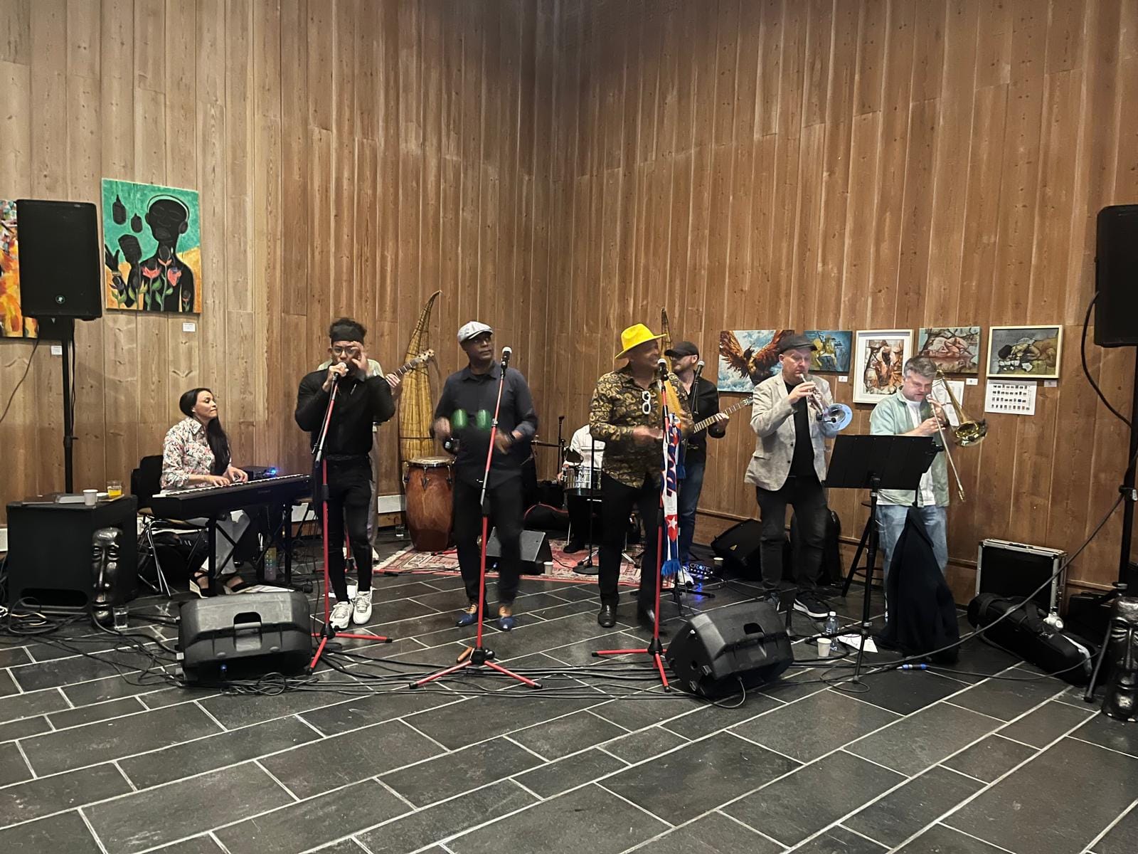 Foredragssalen på Gamle Munch er en stor sal. Det var her de monumentale bildene hang i sin tid før det nye museet kom i Bjørvika. Vi som organiserte eventene, var derfor ganske spente på om vi ville klare å fylle lokalet i tilstrekkelig grad. Til vår store glede kom det mange folk på fredagsarrangementene, og vi hadde en flott kveld! Vi ga hverandre «high five» og sa YES – for sammen kan vi få ting til! Tone Martha Eriksen startet kvelden for oss med «Hva var vel livet uten toner?» – og andre fine melodier av blant annet Edvard Grieg. Deretter kom Reinaldo Luco og Laurent på scenen – eller: El perrito & El conejo (hunden og kaninen) som de også kalles. Det svingte skikkelig av både saksofonen og gitaren – og Reinaldos stemme er bare utrolig! Lytt godt! Den som følger med, vil få høre mer av disse to stilige herrene om ikke så lenge! Etter dette fikk vi en bra oppvarming av DJ Mojito før Comgoya kom på scenen. Mange salsaglade folk fylte det store dansegulvet på Gamle Munch. Luis Silva delte ut dansepremier og lotterigevinster – og det var mange som ikke hadde så lyst til å gå da vi ble nødt til å stenge dørene. Flere av oss ruslet opp på Skatten på Tøyen for ta en liten pust i bakken og kanskje noe godt i glasset.